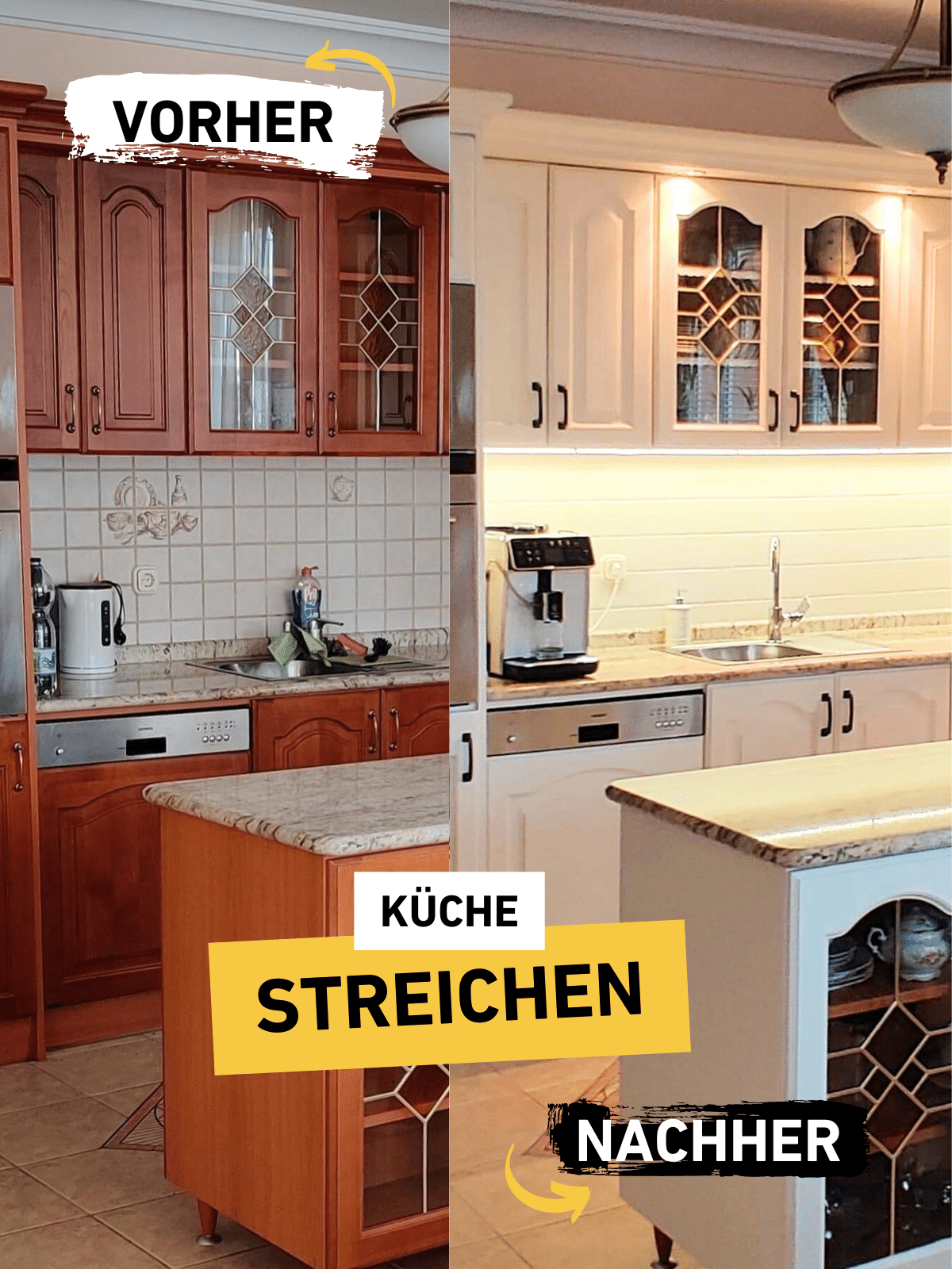 Ich habe meine Küche mit der Möbelfarbe ohne schleifen gestrichen und bin begeistert! Eine neue, teure Küche war dank dieser Farbe nicht nötig. Selbst die Arbeitsplatte ließ sich problemlos mitstreichen. Die Farbe hält allen Reinigungsmitteln stand – Fett, Spritzer und Co. können ganz einfach weggewischt werden. Eine fantastische Lösung, die ich jedem empfehlen kann!